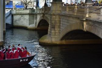 教会の聖歌隊が、歌を歌いながら街を練り歩き、クリスマスの喜び・楽しさを伝えるキャロリング。これを舟(船名:みづは)で移動しながら行うことで、川沿いの様々なスポットで道行く人にクリスマスの雰囲気を味わって頂くことができ、水の都として発展してきた東京の水辺の今後の可能性に人の関心が寄せられることを期待しています。