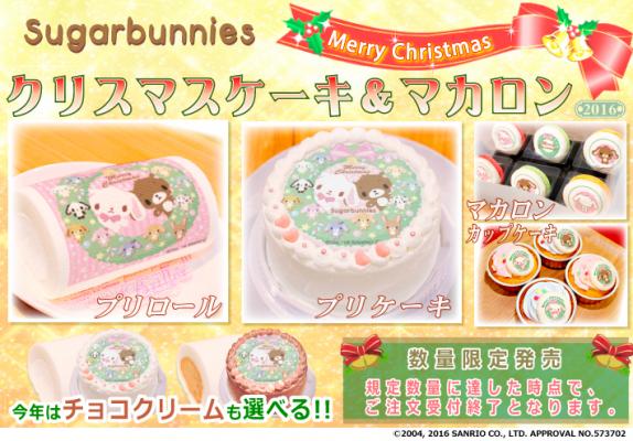 「プリロール」を運営する株式会社栄通(本社:東京都八王子市)は、人気キャラクター『シュガーバニーズ』のクリスマス限定デザインのプリントケーキ&マカロンを2016年11月14日(月)より予約受付開始いたしました。