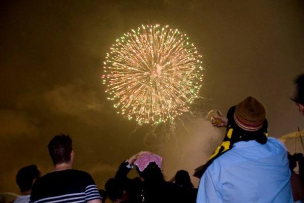 ▲船上から眺める『お台場レインボー花火』見た事無いほど花火が近くに!