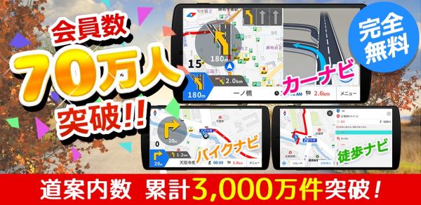 【会員数70万人】【道案内数3,000万件】突破!!(*1)