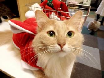 例のクリスマス企画,当店の猫店員たちがサンタさんやトナカイ他のコスプレで接客をします。
