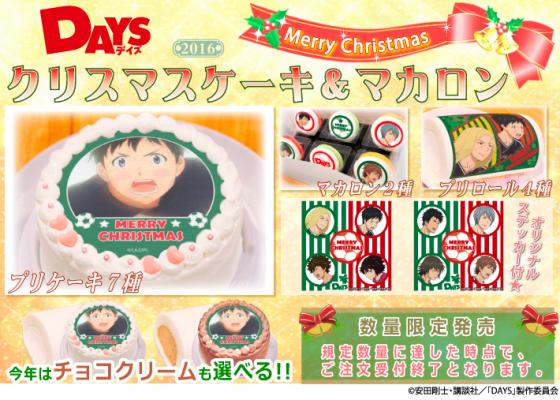 「プリロール」を運営する株式会社栄通(本社:東京都八王子市)は、人気アニメ『DAYS』のクリスマス限定デザインのプリントケーキ&マカロンを2016年11月4日(金)より予約受付開始いたしました。