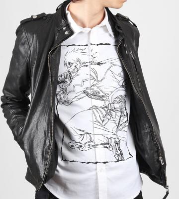 島津豊久の印象的なイラストを大胆に印刷したグラフィックシャツです。