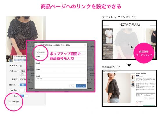 (2) 各投稿画像からECサイトの商品詳細ページにリンクを設定することができるため、投稿画像で紹介されている商品の購買に直接つなげることが可能です。