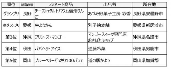 次いで準グランプリには愛媛県代表の別子飴本舗(愛媛県新居浜市)の「生ようかん」が、第3位には沖縄県代表のマンゴースィーツ専門店・おきぽたショップ(沖縄県名護市)の「プリン・ス・マンゴー」 という結果になりました。
