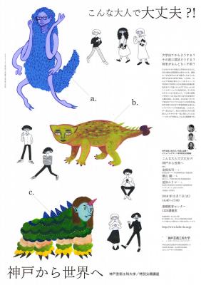 学校法人谷岡学園 神戸芸術工科大学(神戸市西区、学長:齊木崇人)では、芸術工学部ビジュアルデザイン学科において、横山剛氏、金指光司氏(映像出演)と本学非常勤講師の星加ルリコ氏の神戸を代表する3名の若手社長をお迎えし、大学出てからどうする?その前に就活どうする?将来がなんとなく不安?そんなモヤモヤを抱えた学生をテーマに、講座を行います。