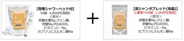 重炭酸倶楽部の湯シャンタブレットは12月18日(日)~12月25日(日)の1週間、期間限定で『専用シャワーヘッド付湯シャンタブレット50錠(¥9,800円税別)』をお買い上げの方に『湯シャンタブレット10錠(¥1,000円税別)』をセットにしてお届けいたします。