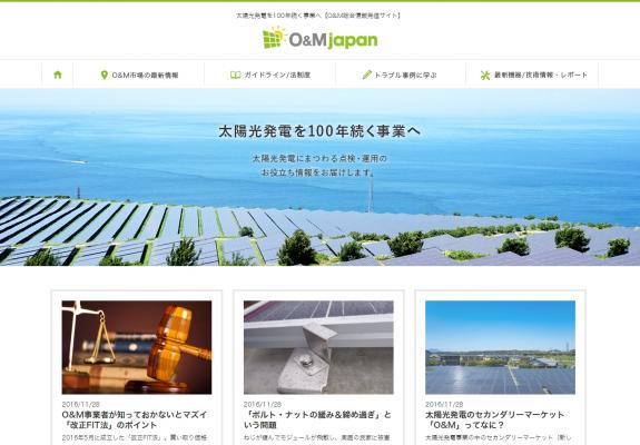 株式会社りょうしんメンテナンスサービス(本社:大阪市中央区、以下当社)は、太陽光発電のオペレーションとメンテナンス(O&M)に関する情報を提供するWEBサイト「O&M Japan(オーアンドエム・ジャパン)」を11月30日にオープンしました。