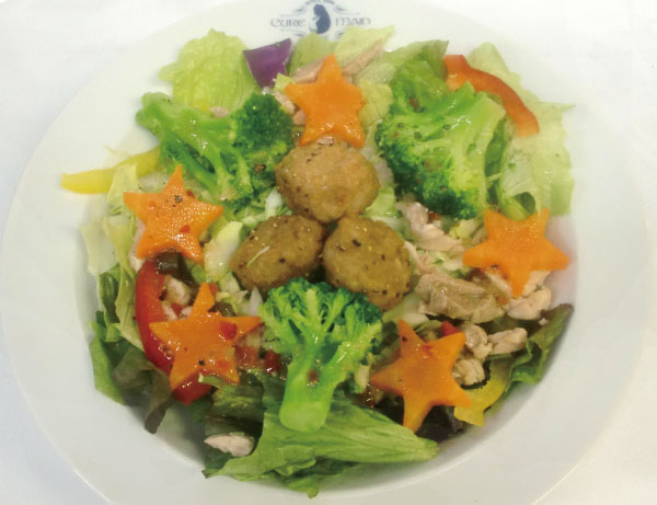 具だくさんのボリューミーなサラダです。ランダム絵柄の旗も付いてきます!