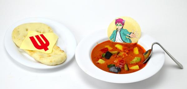 曲がったスプーンで何とも食べにくいΨ(サイ)難なカレー。超能力で苦労する斉木楠雄の気分を味わえます。