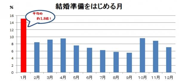 結婚を決めた二人が、結婚に向けた準備のために何らかの最初のアクションを起こすのは、1年のうち〈1月〉がダントツに多いことが分かりました。正月休みに無事両親への挨拶や両家の顔合せを済ませて、いよいよ準備を本格化させるカップルが多いことが伺える結果となりました。今年も残りあと1ヶ月。男性にとっては緊張の一大イベント「彼女の実家へのご挨拶」を年明けに控え、すでに緊張気味の日々を送る男性も多いのかも知れません。