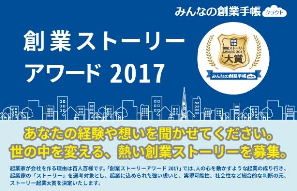 2016年12月1日から2017年1月31日まで起業家の創業ストーリーを募集。人の心を動かすような起業の成り行き、起業家のストーリーを選考対象とし、起業に込められた強い想いと、実現可能性、社会性など総合的な判断の元、「ストーリー起業大賞」を決定します。