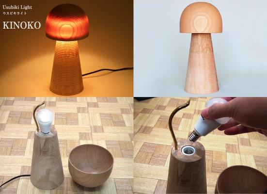 山中ウスビキライト KINOKO(ベル) ~山中漆器のスタンド型ライト~