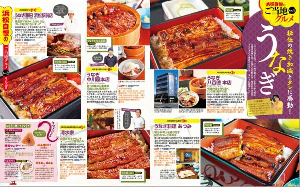 巻頭では「一日めいっぱい遊んで食べて体験しちゃお!」というコンセプトの下、浜松が誇る名物が大集結。