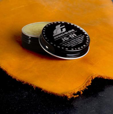 グラブグリスは、ここ数年の傾向としては接着剤の成分が多いものが好まれて使われています。しかしながら、本来のグラブグリスの機能は、グリスを革に浸透させることで、グラブにしなやかさとコシを持たせるというものです。当商品は、オイル分が多く浸透し易いグリスで、革にしなやかなコシを持たせます。