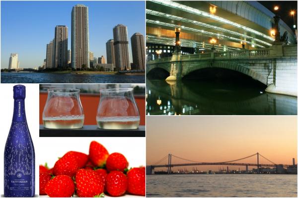 日本橋発着60分の舟遊び、シャンパンテタンジェノクターンスリーヴァーボトル(750ml)1本、