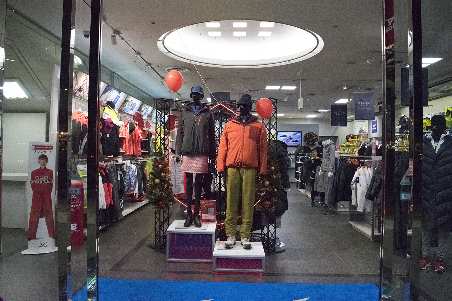 今回、バンタンデザイン研究所デザイン学部の学生が、『ミズノ バンタン 産学協同プロジェクト』により、寒い冬場に温かさをもたらすミズノ独自の吸湿発熱素材、『ブレスサーモ』をイメージして、11月にVP企画のプレゼンを行いました。その際の審査により選抜された企画がエスポートミズノにおけるクリスマス時期のVPとして採用、実施され12月25日(日)まで飾られる事となりました。