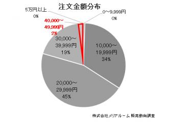 今回の調査期間中の平均購入単価は「23,702円」。商品購入金額の構成比を調査(円グラフ参照)すると、平均単価を上回る4万円以上の購入が全体の2%を超える結果となりました。