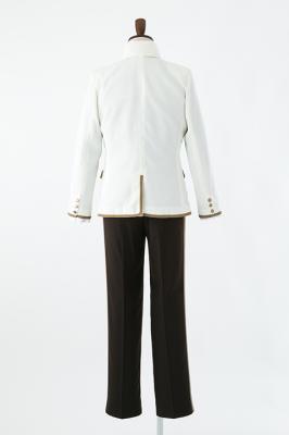 特徴的な衿のジャケットや、サイドラインが入ったパンツを再現しました。