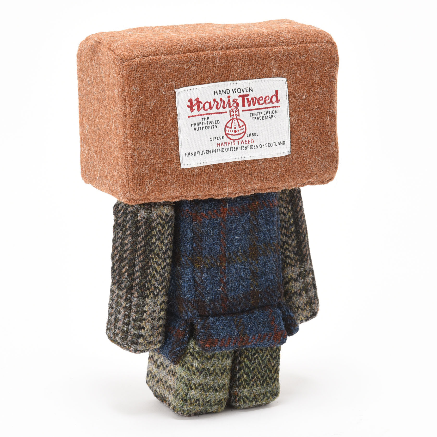 ぬいぐるみには、100年の歴史を持ち世界中に根強いファンを持つテキスタイルブランド「ハリスツイード」の生地を贅沢に全面に使用。可愛らしさの中に伝統的な風合いが融け込んだ、独特の魅力を醸し出すアイテムに仕上がっている。