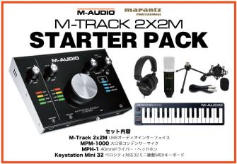 「M-Track 2x2 Starter Pack」と「M-Track 2x2M Starter Pack」は、オーディオインターフェイス、MIDIコントローラー等、DAW音楽制作環境になくてはならない幅広いカテゴリーの製品を展開する「M-AUDIO」ブランドと、コンデンサーマイク、ヘッドホン等、ローコストながら高品質な製品を提供している「marantz Professional」ブランドを組み合わせた、音楽制作を始めたいすべての方に最適な、お得なスターターパックです!