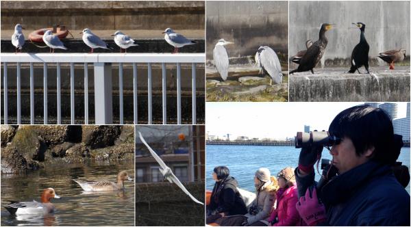 日本橋から隅田川に出て、豊洲や有明付近の臨海運河を、水鳥を発見しながら巡り、勝どきで下船。