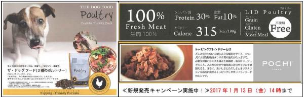 安心の新鮮生肉を使い、そのままでも、トッピングしても最適な栄養バランス、そして、健康へのこだわりも譲らない3つの特徴を備えた本格フードがお手ごろ価格というのも魅力のひとつ。「トッピングフレンドリーフォーミュラー」のフードを主食にすると、手軽に我が家流のカスタムフードが作れ、おいしさとたのしさとオリジナルティが格段に拡がります。犬も人もみんな笑顔になる“ちょうどいい”ドッグフードが「POCHI ザ・ドッグフード(3種のポルトリー)」です(http://www.pochi.co.jp/ext/the-dogfood.html)。