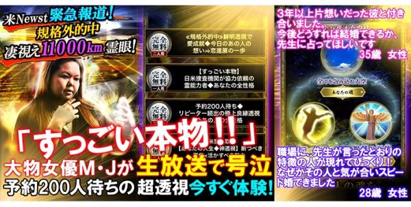 日米捜査機関も協力を依頼する世界的能力者がついに降臨。予約200人待ちの超透視を体感してください。