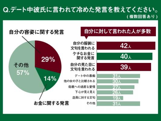 アンケート調査の結果、自分の服装や見た目に関する文句、ケチなお金に関する発言が全体の43%を占めることになりました。