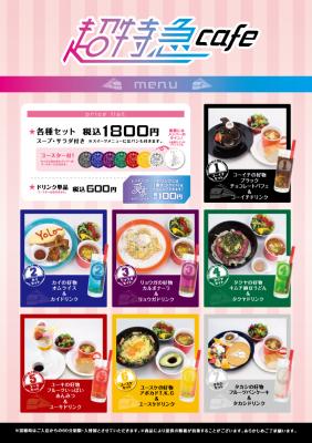 今回は渋谷モディ7F(東京都渋谷区神南)にて、2016年12月22日(木)から2017年2月5日(日)までの期間限定で、『超特急カフェ』をオープンいたします。7人のメンバーの‘好物’をメインにした「1号車コーイチセット」から「7号車タカシセット」をご注文いただくと、それぞれのメンバーのサインと一言コメントが印刷されたオリジナルコースターを1枚プレゼントいたします。
