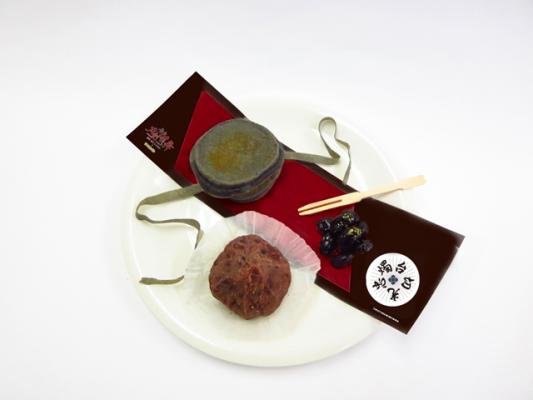 燭台切光忠をモチーフにしたメニュー。劇中でお茶請けとして登場したおはぎが添えられています。
