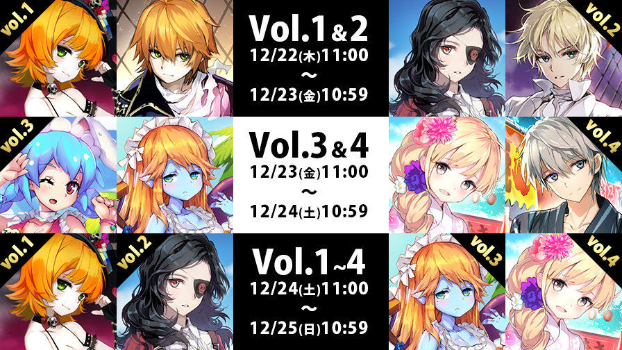 2016年12月24日(土) 11:00~12月25日(日) 10:59 復刻プレミアム召喚(Vol.1~Vol.4)