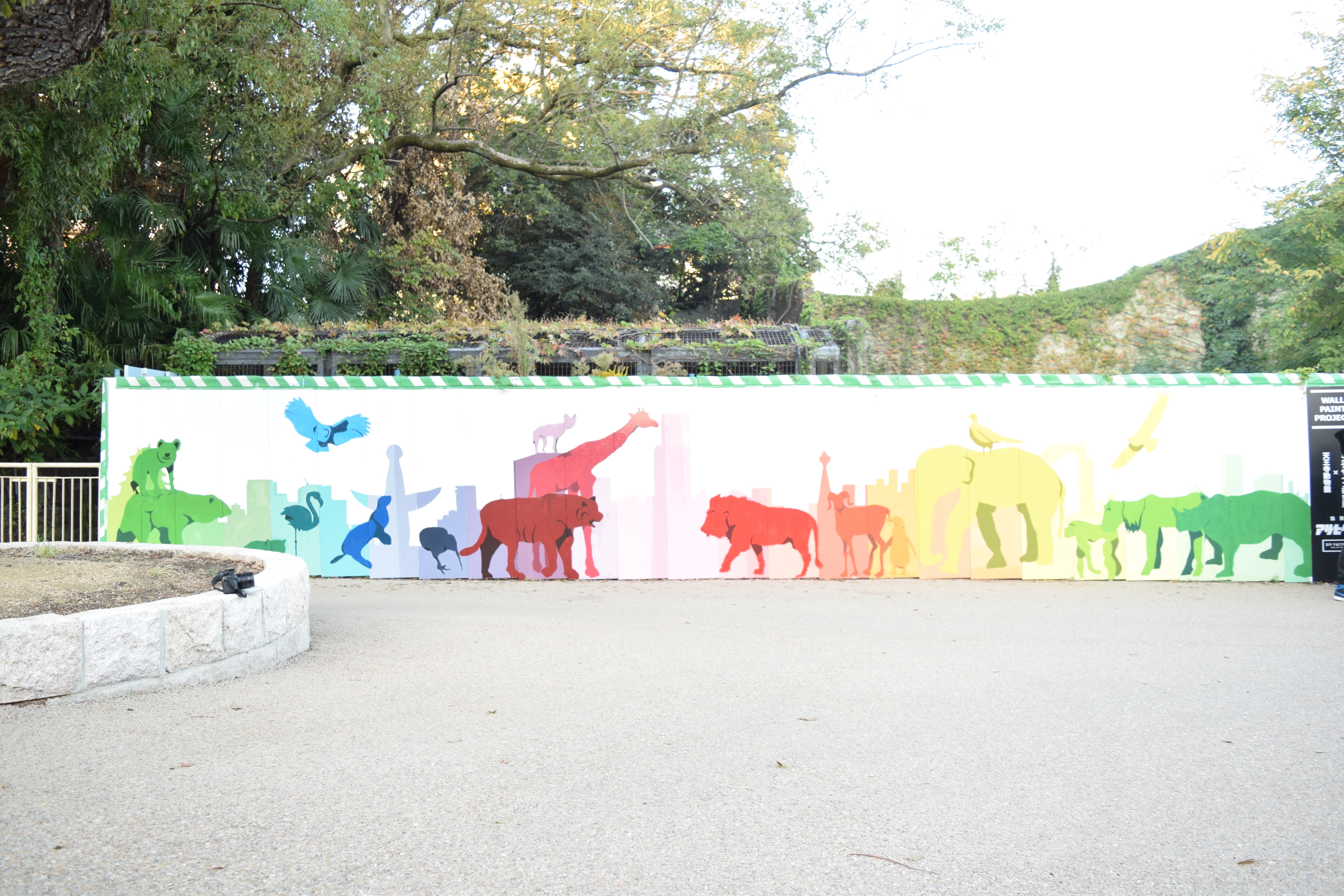 また、天王寺動物園との産学協同プロジェクトでは、バンタンデザイン研究所大阪校のデザイン基礎科(1年)・グラフィックデザイン専攻・イラスト&アート専攻・フォトグラフィ専攻・映像制作専攻の学生により、ウォールペイントプロジェクトも実施致しました。