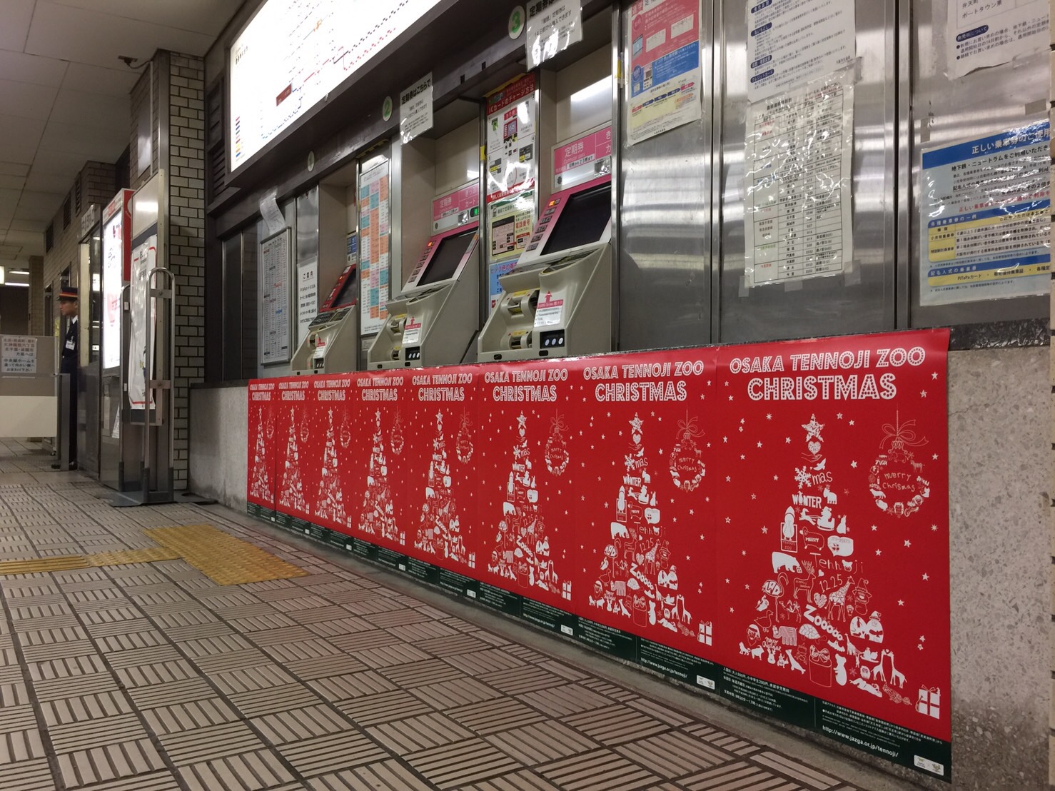 完成したポスターは12月25日(日)までのクリスマス期間、WEB上での掲載(大阪市HP、天王寺動物園HP、天王寺動物園スタッフブログ、フェイスブック等)以外にも動物園内、付近駅掲示板、てんしばサイネージ、動物園入口サイネージ、地下鉄御堂筋線地下鉄駅構内にも現在掲示中となっております。