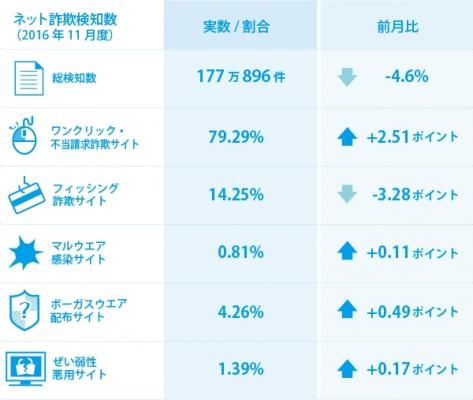 BBソフトサービス(BBSS)の「Internet SagiWallTM(インターネットサギウォール)」で検知したデータを基にした、2016年11月度のインターネット詐欺リポートです。