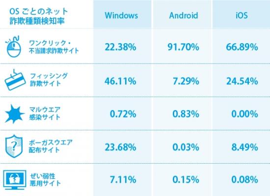 OSごとのネット詐欺種類検知率