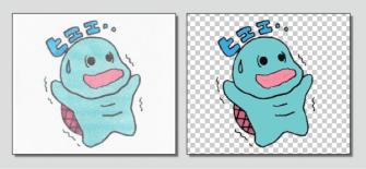 普通用紙に描かれた手描きイラストを元に、「背景透過」や「色調整」などデジタルツールでの処理や「説明文英訳」といった登録作業のお手伝いをいたします。