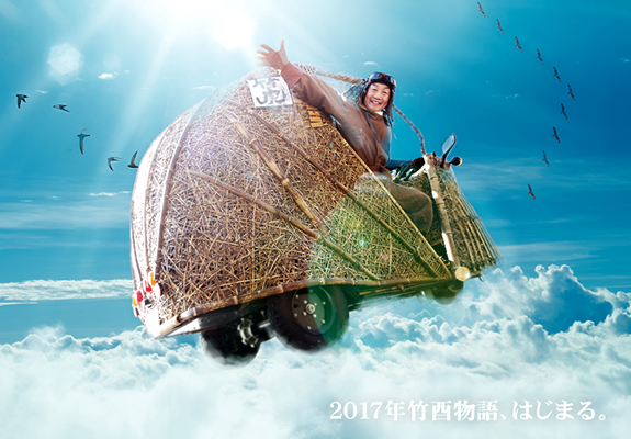 2017年竹虎年賀状は飛行機乗りに変身した竹虎四代目が、竹トラッカーで青空を駆けるという希望にあふれた一枚です。去年に引き続き、雑誌「GRAZIA」の表紙や、芸能アーティストの写真集などを手掛けられる写真家のミナモトタダユキ氏の協力により完成しました。また、年賀状と同時に公開された新春挨拶動画では竹虎四代目とミナモトタダユキ氏で臨んだ実際の撮影の様子も紹介しております。