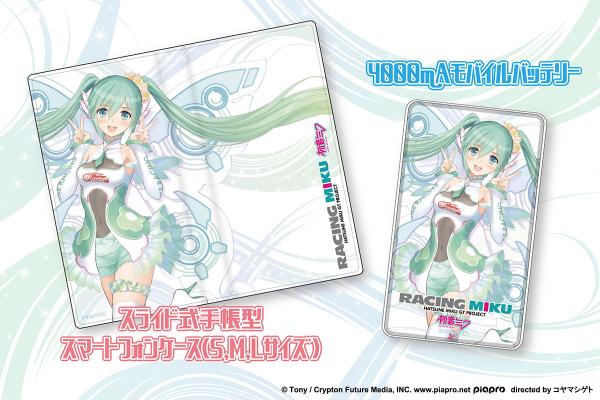 先日発表になったレーシングミクの新ビジュアルが各種Android端末にも対応した手帳型スマートフォンケースとモバイルバッテリーになって登場!