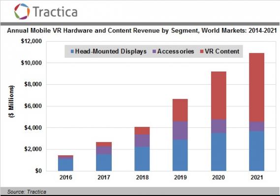 モバイルVRヘッドマウントディスプレイ、アクセサリ、コンテンツの収益は2021年までに109億に到達