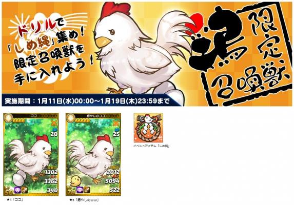 また1月11日(水)より「発掘!ドリル祭り」第3弾として「2017年限定召喚獣をGETせよ!」が開催となります。