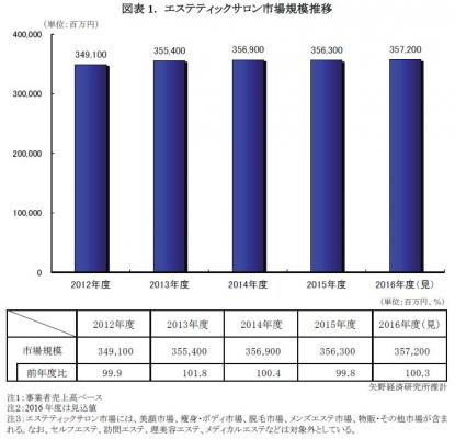 ◆2016年度のエステティックサロン市場規模は、前年度比100.3%の3,572億円の見込
