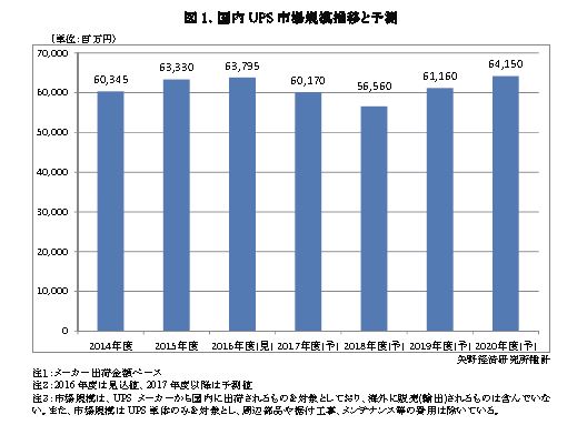 本調査におけるUPS市場規模は、UPSメーカーから国内に出荷されるものを対象としており、海外に販売(輸出)されるものは含んでいない。また、市場規模はUPS単体のみを対象とし、周辺部品や据付工事、メンテナンス等の費用は除いている。