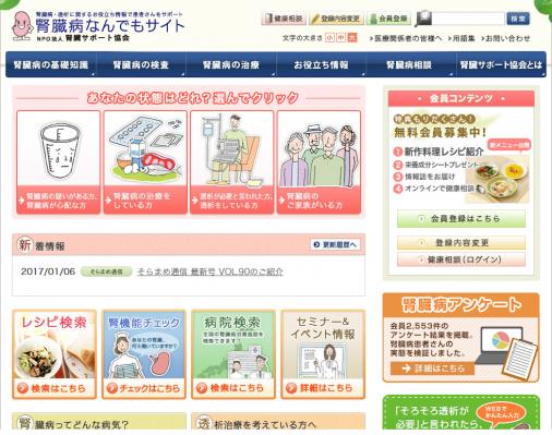 NPO法人腎臓サポート協会では、ホームページ『腎臓病なんでもサイト』などを通じて、腎臓病患者さんとそのご家族に役立つ情報を提供しています。また会員の方は無料で腎臓病のオンライン相談を行っております。