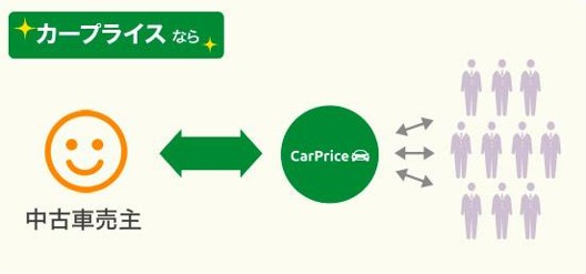 カープライスは、独自のネットオークションを導入した新しいクルマ買取サービスです。ロシアで発祥し、世界10か国で展開しているビジネススキームを日本で初めて取り入れ、今までなかったCtoBtoBのサービスを提供しています。お客様の車をオークションにかけ、全国の中古車販売店からの入札を直接募ることで、中間業者によるマージンをカットし、従来よりも15%~20%高い買取サービスを実現しました。また、たった一回、30分の実車査定のみで買取金額が決まるため、従来の一括査定により発生する面倒な相見積が不要となります。最新のビジネススキームで、どこよりも楽に高く車を売却できる、それがカープライスです。