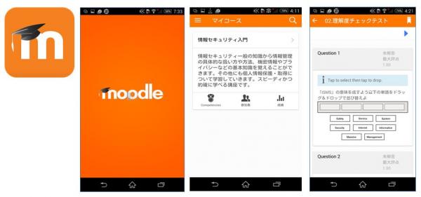 Moodleは基本的にレスポンシブ対応となりますが、アプリを利用することで、より安定性があり、タッチひとつでeラーニングサイトにたどり着ける利便性があります。Android版はGoogle Play、iOS版はアップルのapp storeにて無料配信中です。