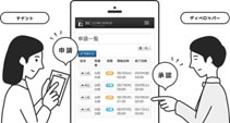 「SCコンシェルジュ(R) ショップマネージャー」は、 施設の運営管理者と出店テナントの間にある、「各種申請」「アンケート」「営業報告」「お知らせ」などの日々の基本的なやりとりをWebシステム化した、業務効率化ツールです。