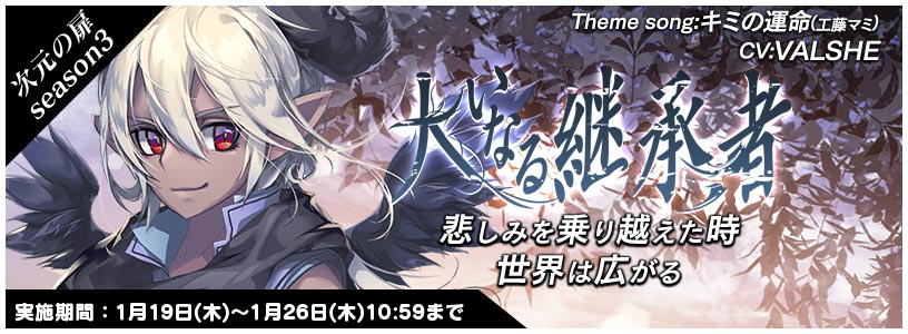 また本日より次元の扉Season3「大いなる継承者」登場、声優コラボイベント「越冬準備大作戦」や復刻イベント「彼女たちのティータイム♪」が開催となりますので併せてお知らせいたします。