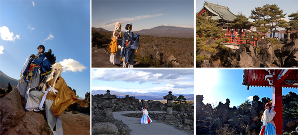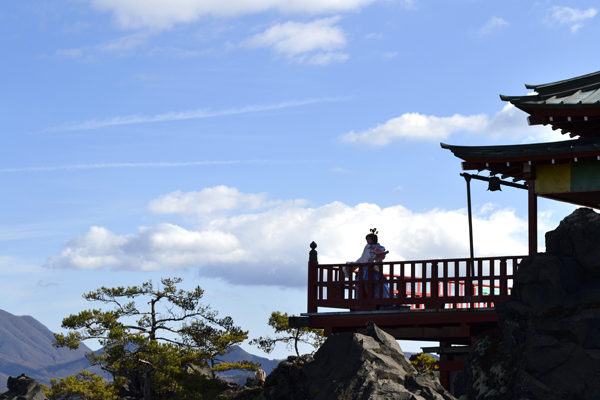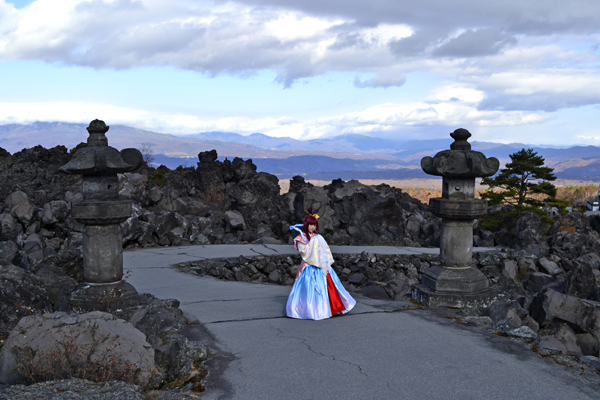 鬼押出し園では、人の背丈を楽々越える大迫力の溶岩を背景に撮影が可能!