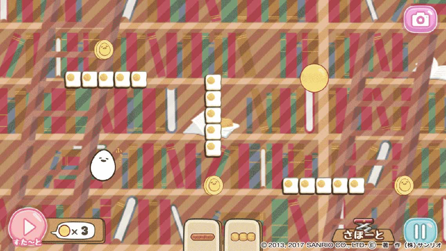 「ころころぐでたま」は、ボールをコロコロ転がして、ぐでたまに届けるシンプルなゲームです。自然と転がっていくボールを、さまざまな道具を駆使してぐでたまに届けることができればクリアとなり、ステージが進むに従って難易度が増していきます。また、ゲーム内で獲得できるぐでたまコインを集めることにより、色々な姿の可愛い/面白いぐでたまをコレクションすることができます。(本ゲームのために、新たにボイスやイラストなどを追加しております)。